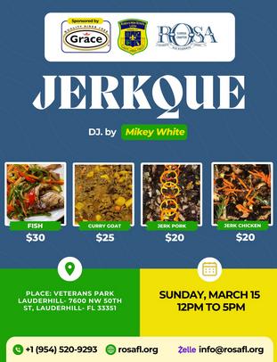 Our annual Jerkque, April 6th. 2025. Phone contact # 954-520-9293 or email address info@rosafl.org